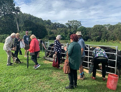 On June 21st 48 Probus Members from 8 Gold Coast Probus Clubs travelled to an unknown destination for a 2nd Mystery tour. Many had missed out on the first Mystery tour and were given first opportunity to the 2nd trip. Leaving the Gold Coast heading south many tried to guess the final destination without much luck. After stoppig at Brunswick Heads we headed further south to Altstonville and finally our destination became clear. We were travelling to Summerland House Farm.